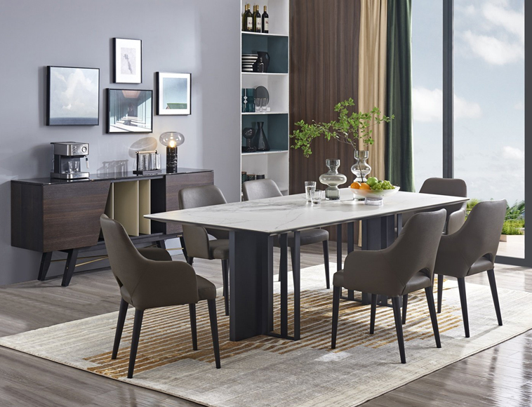 Chất liệu bàn mặt đá khung gỗ tự nhiên tần bì sồi nga, ghế bọc nỉ nhập khẩu