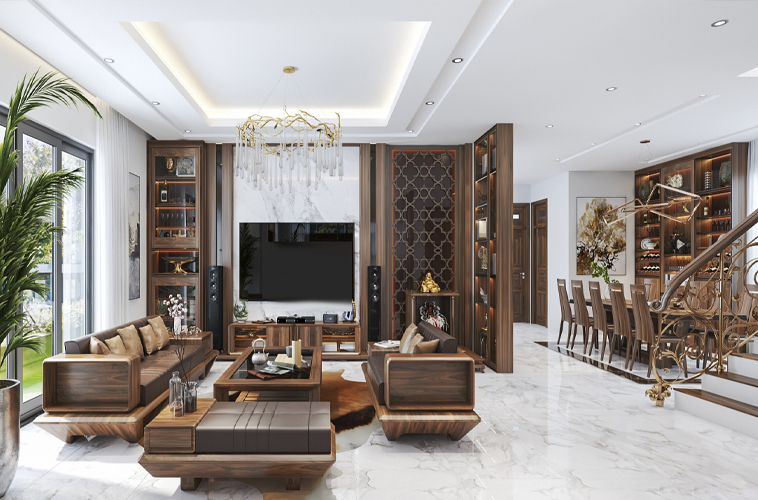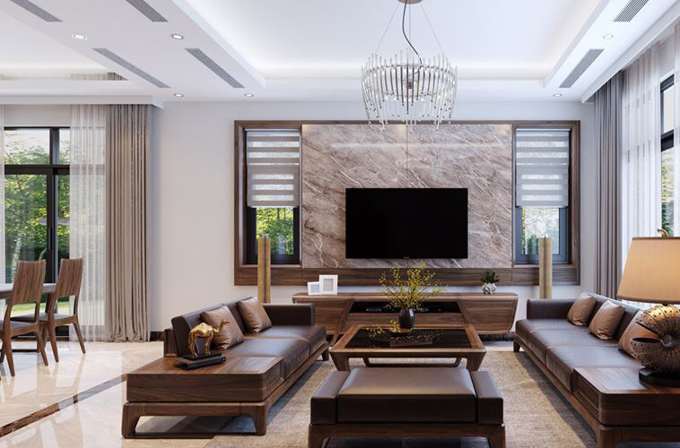 Nội thất phòng khách mã PK01 được thiết kế và thi công cho khách hàng ở Mỹ dình ,Long Biên ,Thái Nguyên.