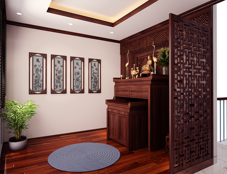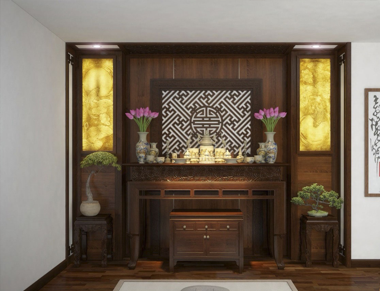 Nội thất phòng thờ mã VBT01 được thiết kế và thi công cho khách hàng ở Hà Nội