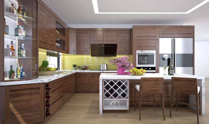 Phòng bếp gỗ óc chó nhà chị Hạnh -Khu Đô Thị Tây Nam Linh Đàm- Hà Nội