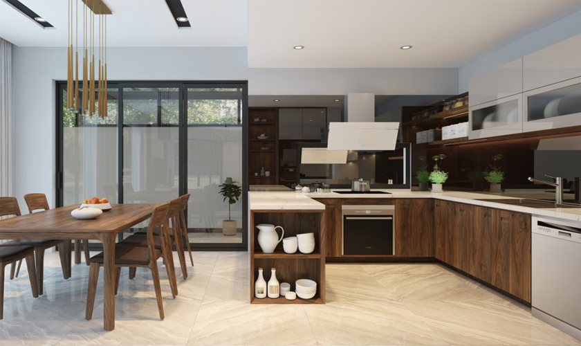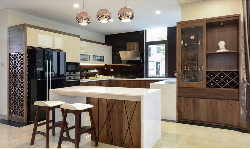 Nhà Anh Quang TP Yên Bái – Bàn ăn gỗ óc chó – Tủ bếp gỗ chó![]()